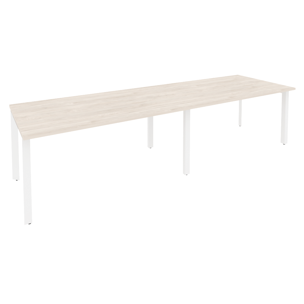 Конференц стол для переговоров (2 столешницы) П-образный каркас Onix O.MP-PRG-2.4 Денвер светлый/Белый металл 3160x980x750