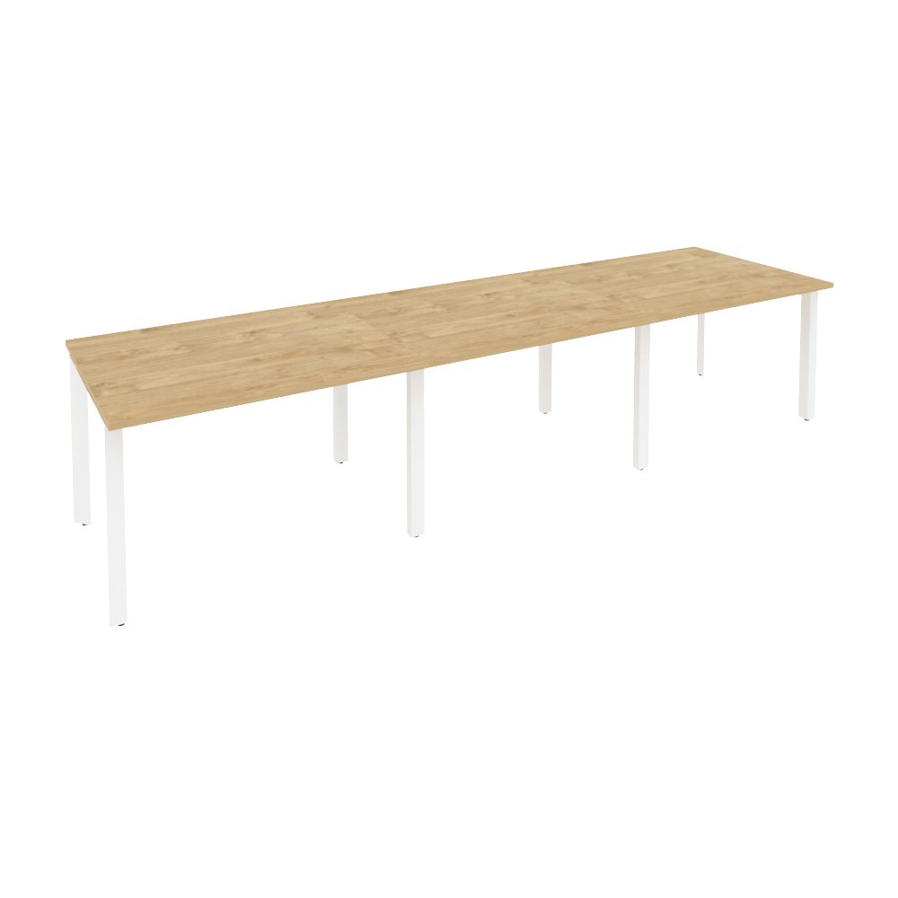 Конференц стол для переговоров (3 столешницы) П-образный каркас Onix O.MP-PRG-3.2 Тиквуд светлый/Белый металл 3540x980x750
