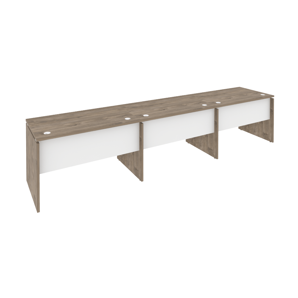 Офисные столы на 3 рабочих места Onix RIVA O.RS-3.2.7 Тиквуд темный-белый 3540x720x750