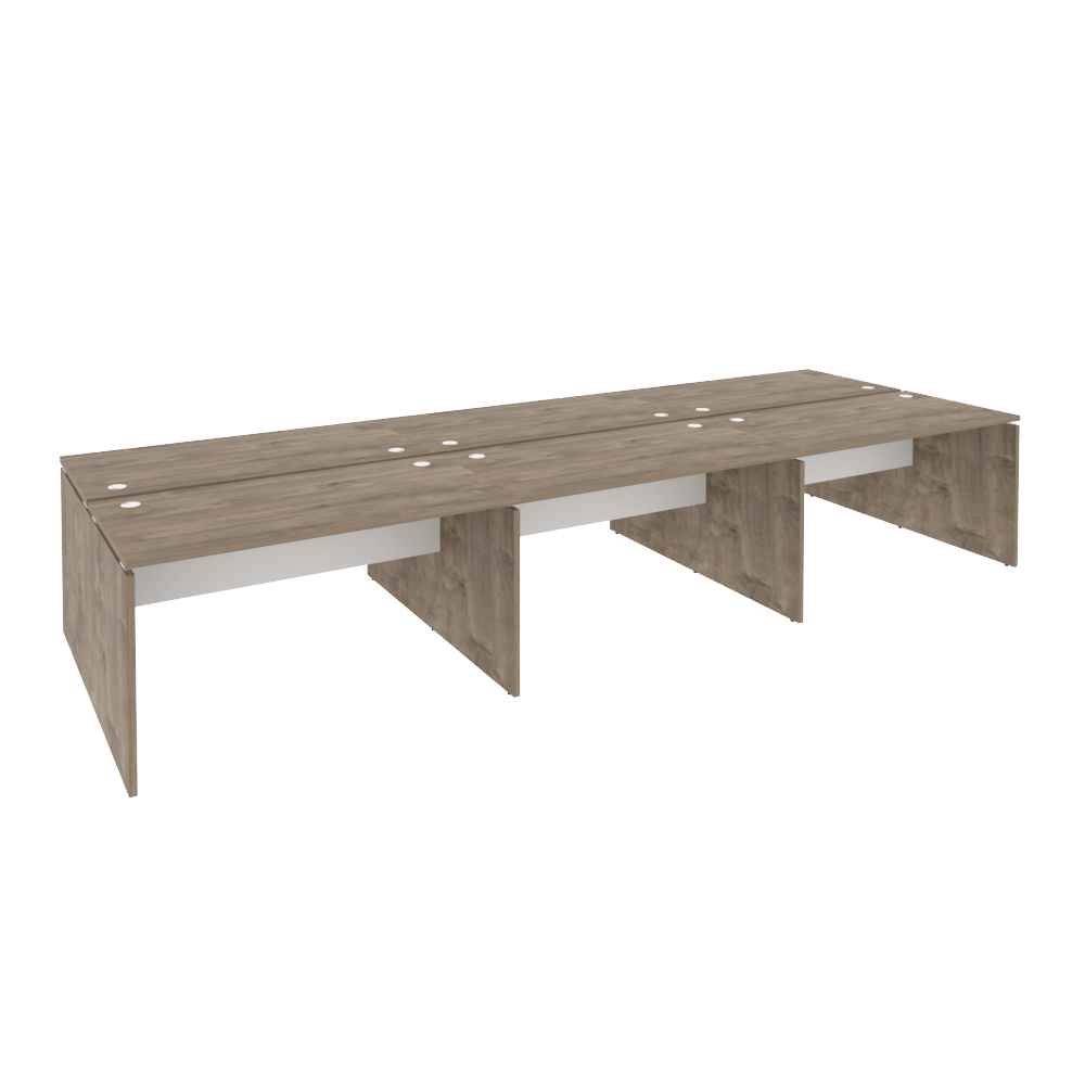 Офисные столы на 6 рабочих места Onix RIVA O.D.RS-6.3.7 Тиквуд темный-белый 4140x1475x750