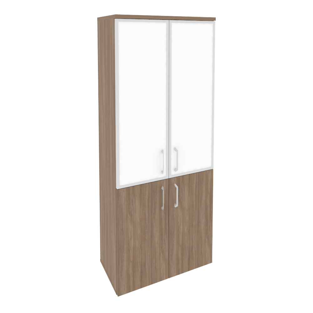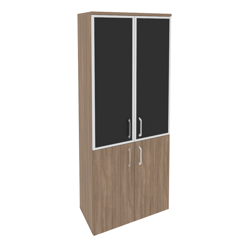 Шкаф для документов высокий широкий (2 низких двери ЛДСП + 2 средних двери стекло в алюминиевой раме) Onix O.ST-1.2R Дуб аризона/white/black 800x420x1977