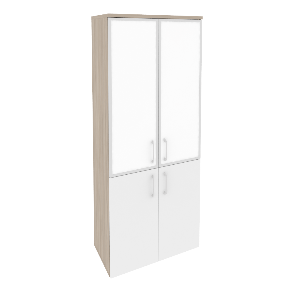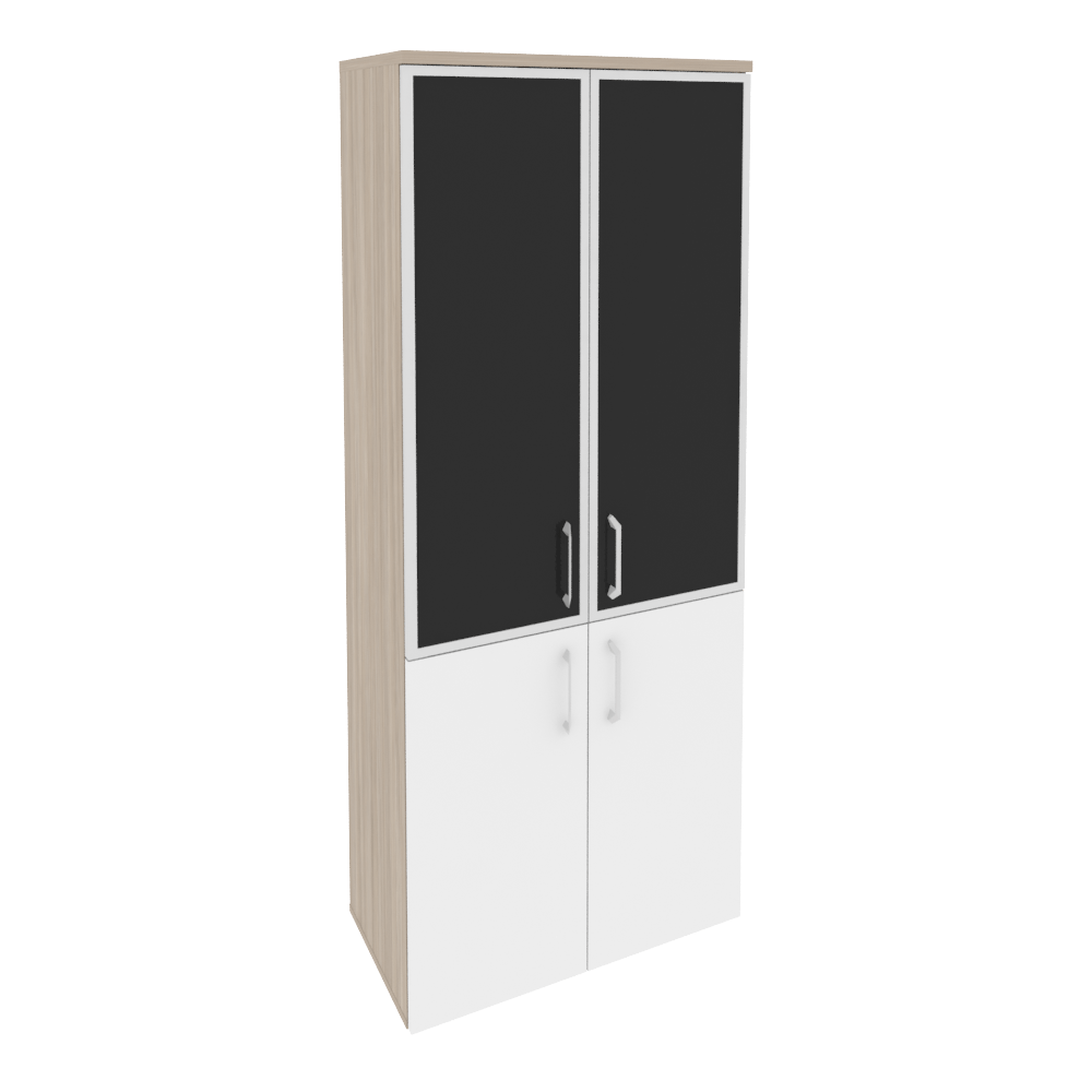 Шкаф для документов высокий широкий (2 низких двери ЛДСП + 2 средних двери стекло в алюминиевой раме) Onix O.ST-1.2R Дуб атик/белый/white/black 800x420x1977