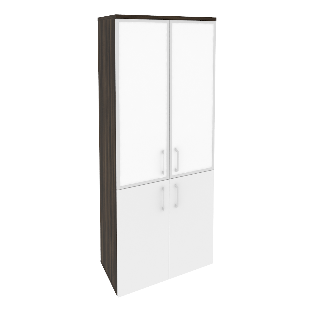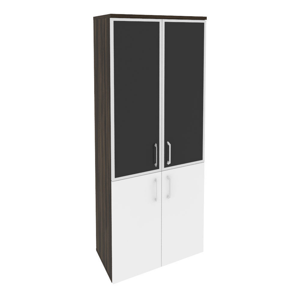 Шкаф для документов высокий широкий (2 низких двери ЛДСП + 2 средних двери стекло в алюминиевой раме) Onix O.ST-1.2R Дуб мали/белый/white/black 800x420x1977
