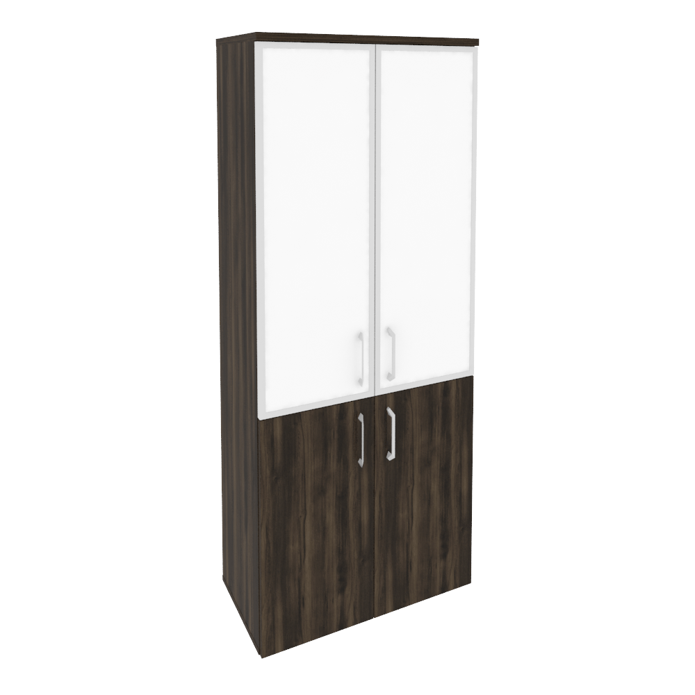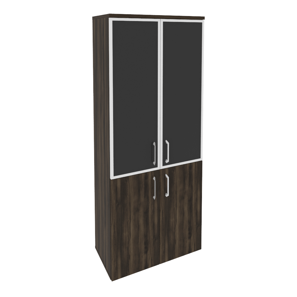 Шкаф для документов высокий широкий (2 низких двери ЛДСП + 2 средних двери стекло в алюминиевой раме) Onix O.ST-1.2R Дуб мали/white/black 800x420x1977