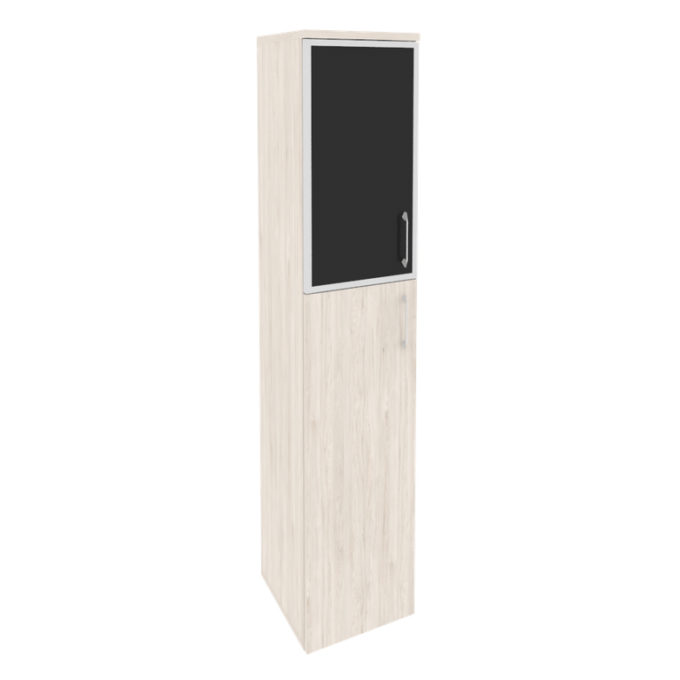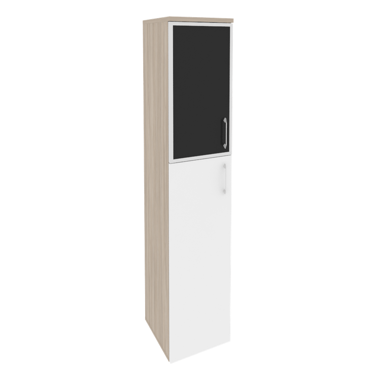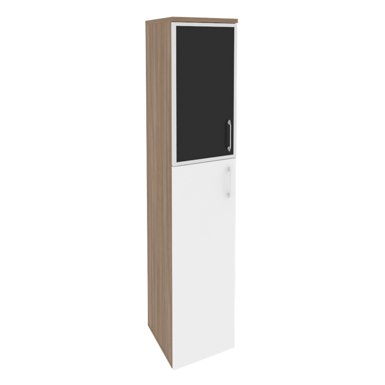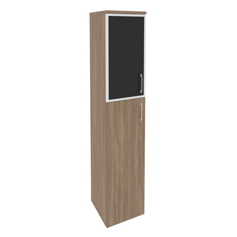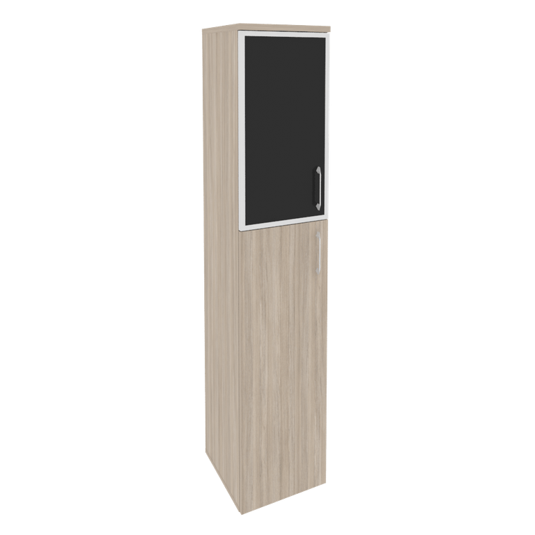 Шкаф для документов высокий узкий левый (1 средняя дверь ЛДСП + 1 низкая дверь стекло в алюминиевой раме) Onix O.SU-1.7R(L) Дуб Аризона/white/black/mate 400x420x1977 Дуб Аризона