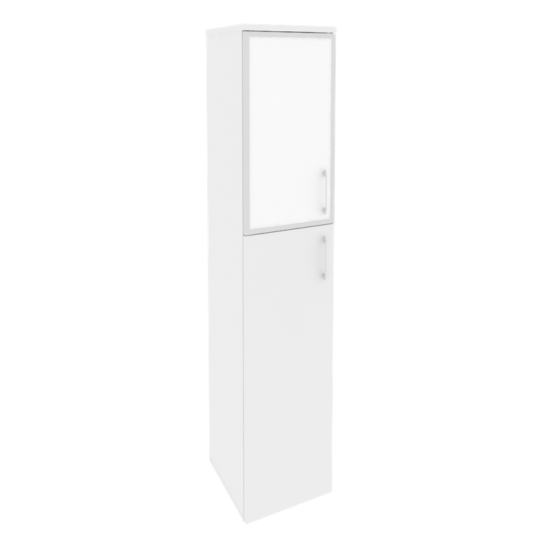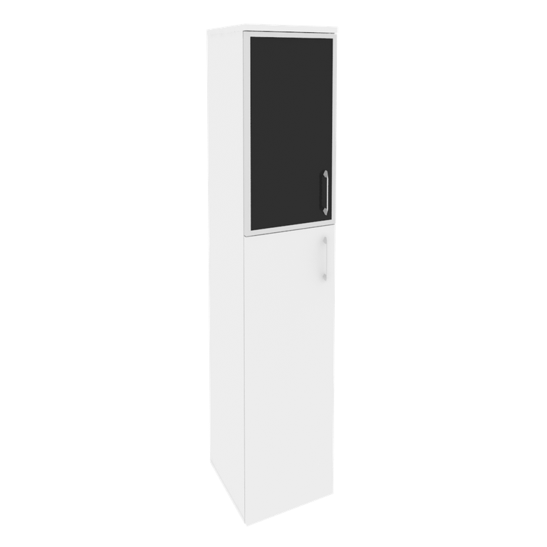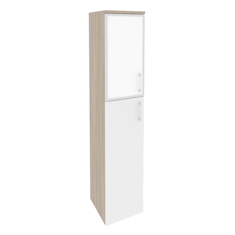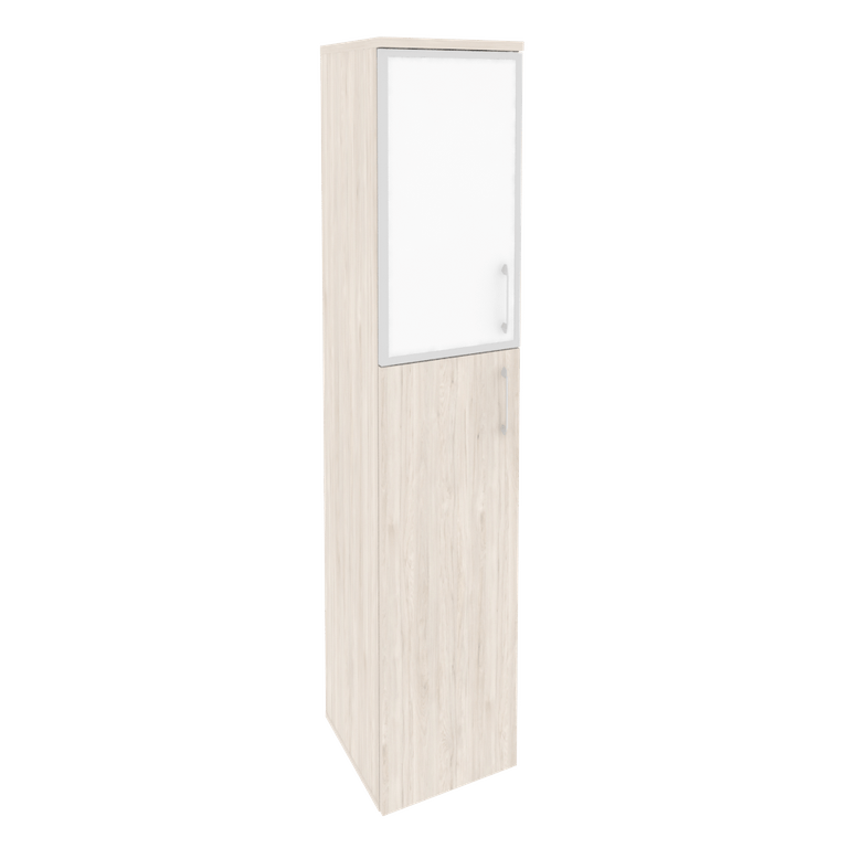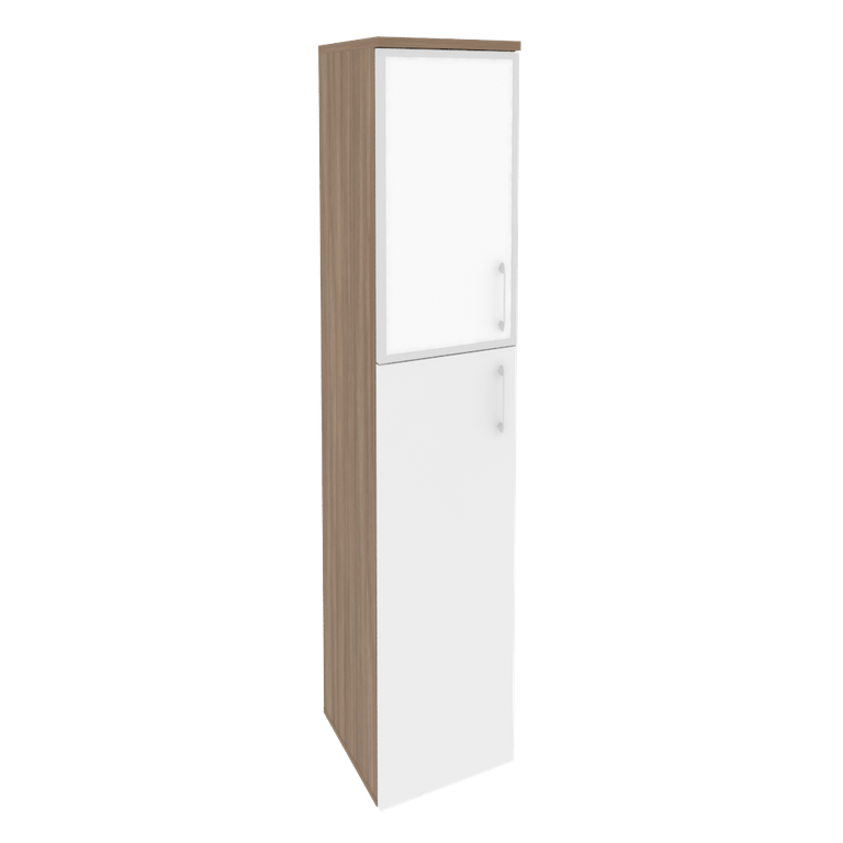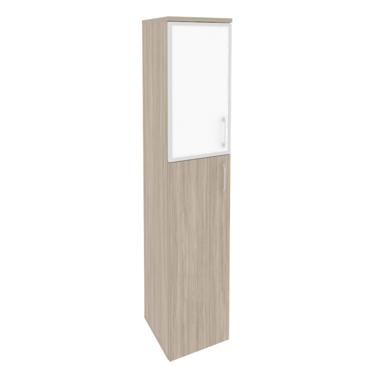 Шкаф для документов высокий узкий левый (1 средняя дверь ЛДСП + 1 низкая дверь стекло в алюминиевой раме) Onix O.SU-1.7R(L) Дуб Аризона/white/black/mate 400x420x1977 Дуб Аризона