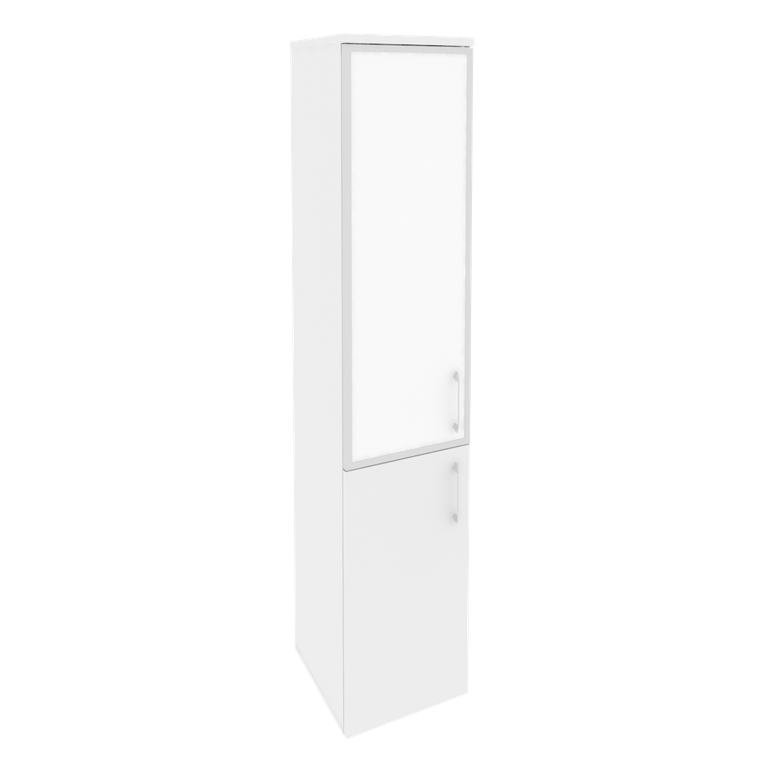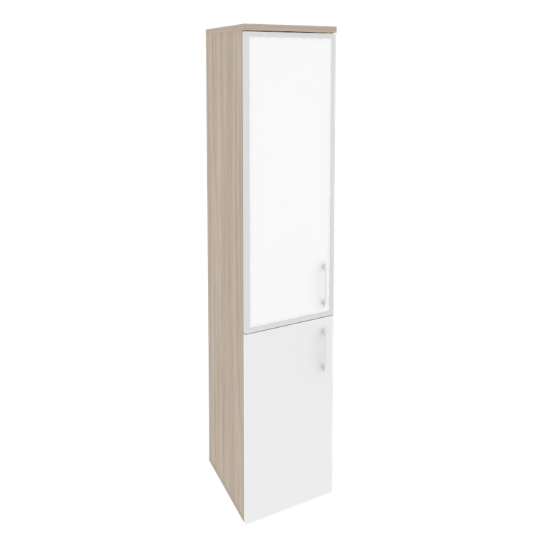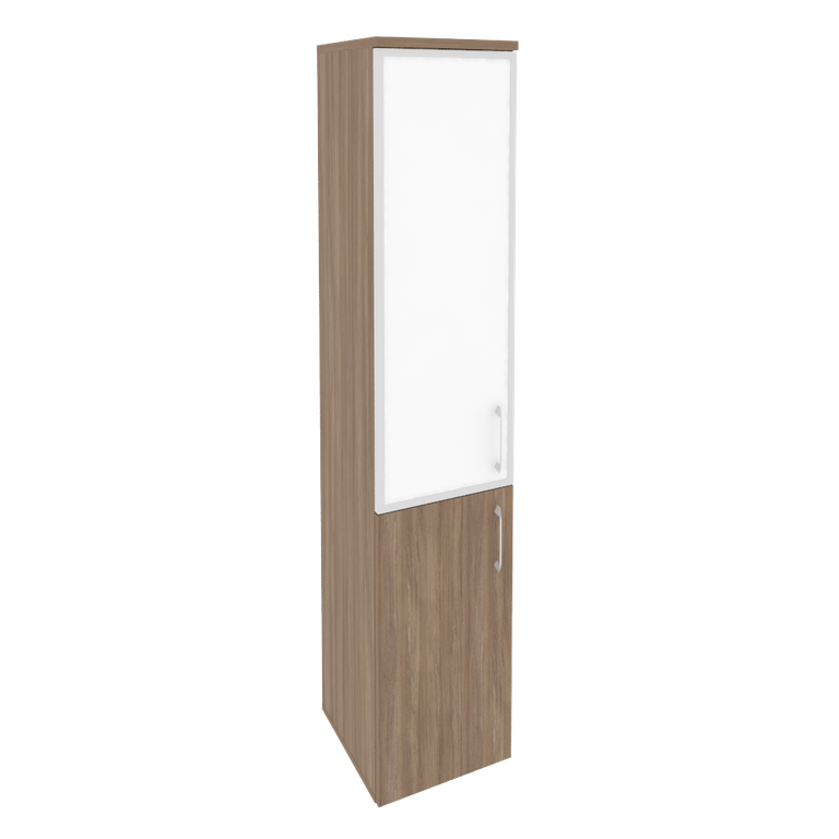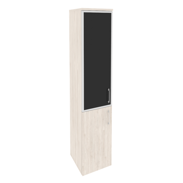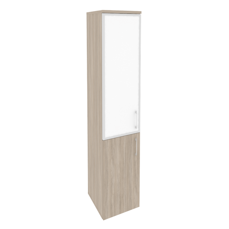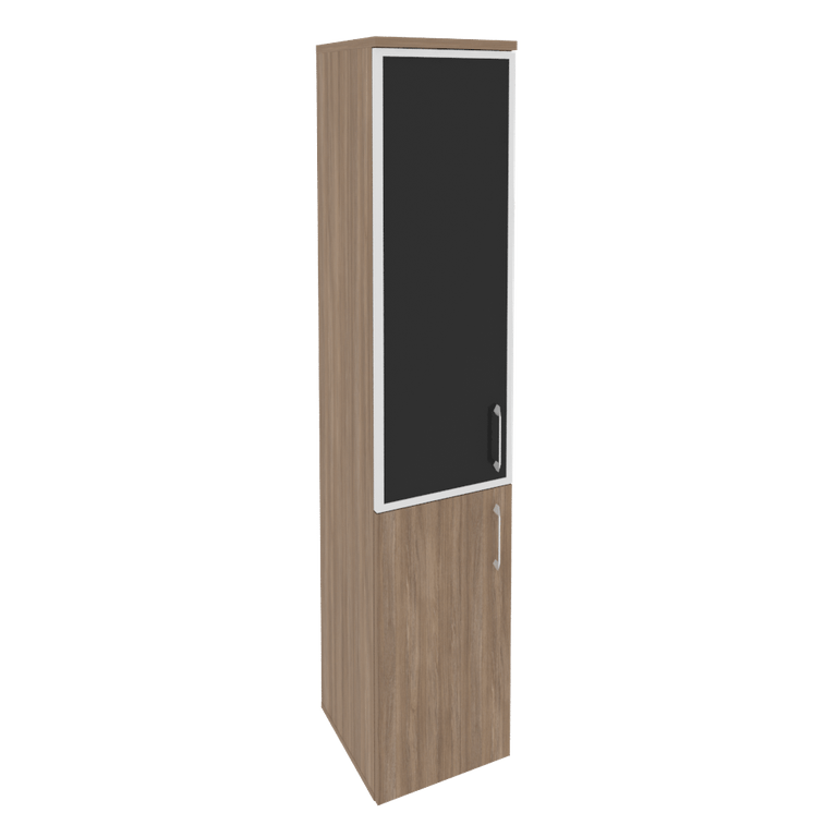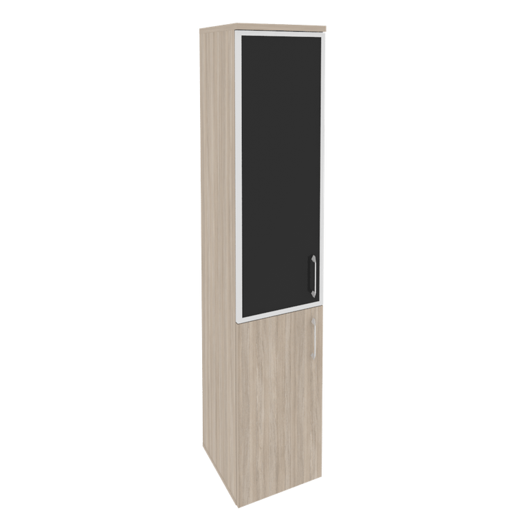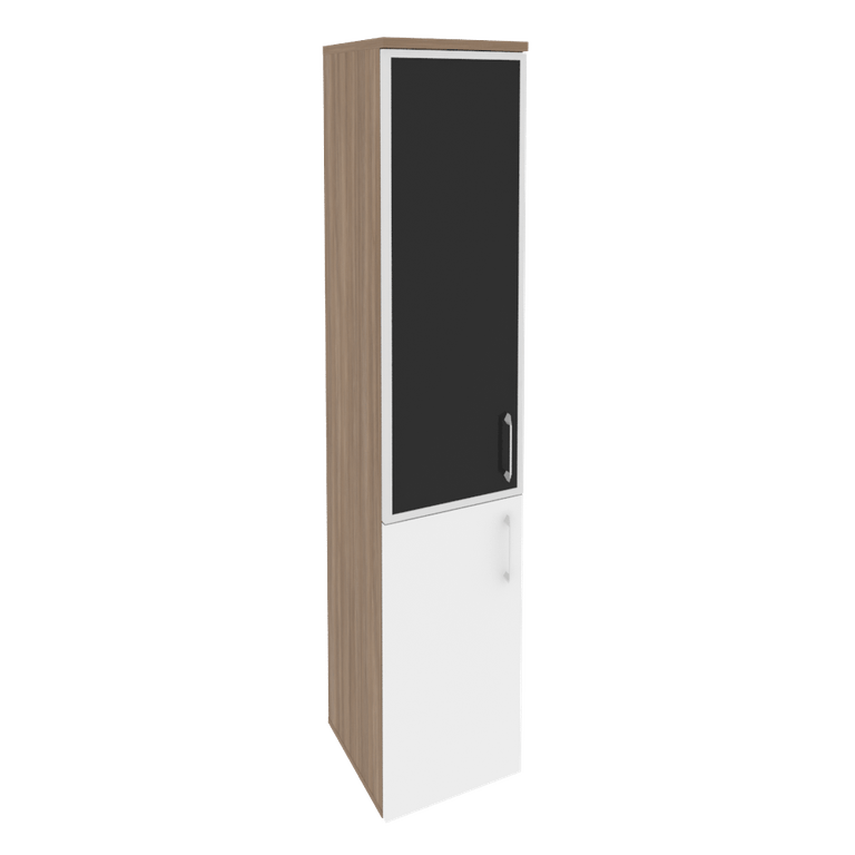 Шкаф для документов высокий узкий левый (низкая дверь ЛДСП + средняя дверь стекло в алюминиевой раме) Onix O.SU-1.2R(L) Дуб Аризона/white/black 400x420x1977 Дуб Аризона