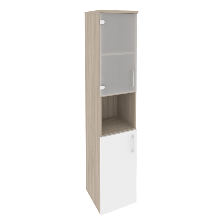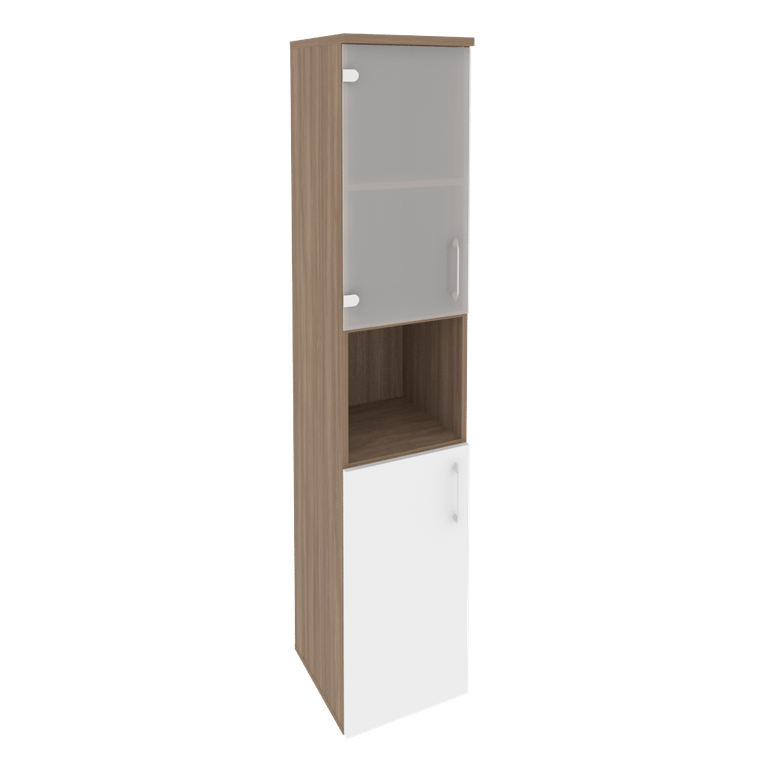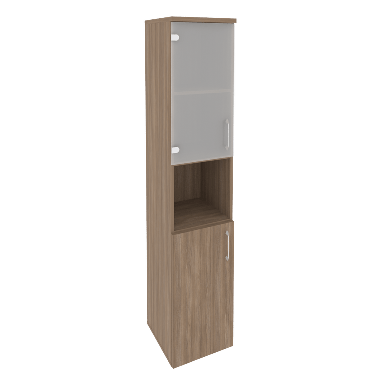 Шкаф для документов высокий узкий левый (низкая ЛДСП + короткая дверь стекло) Onix O.SU-1.4(L) Дуб Аризона 400x420x1977 Дуб Аризона