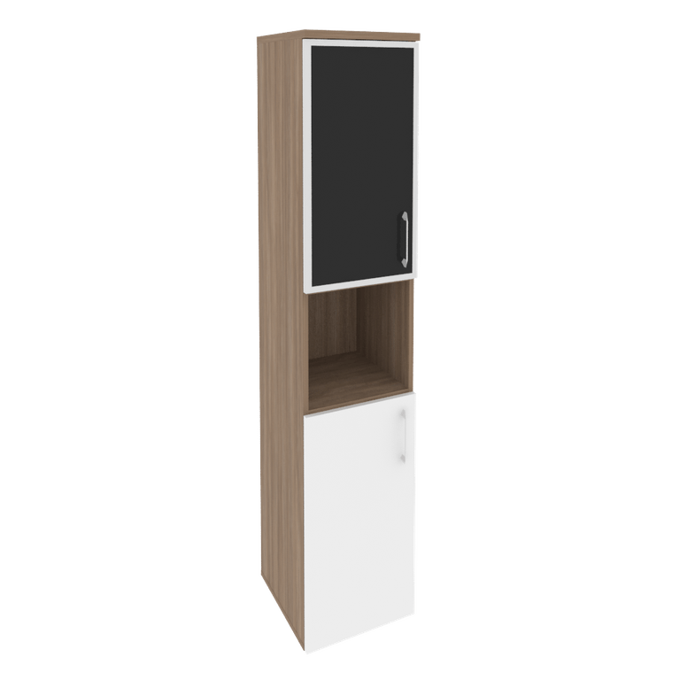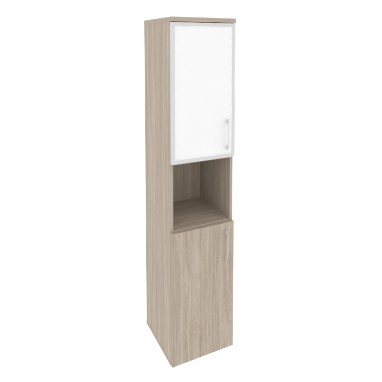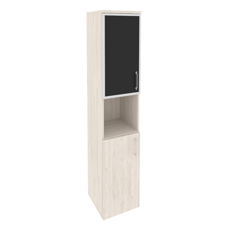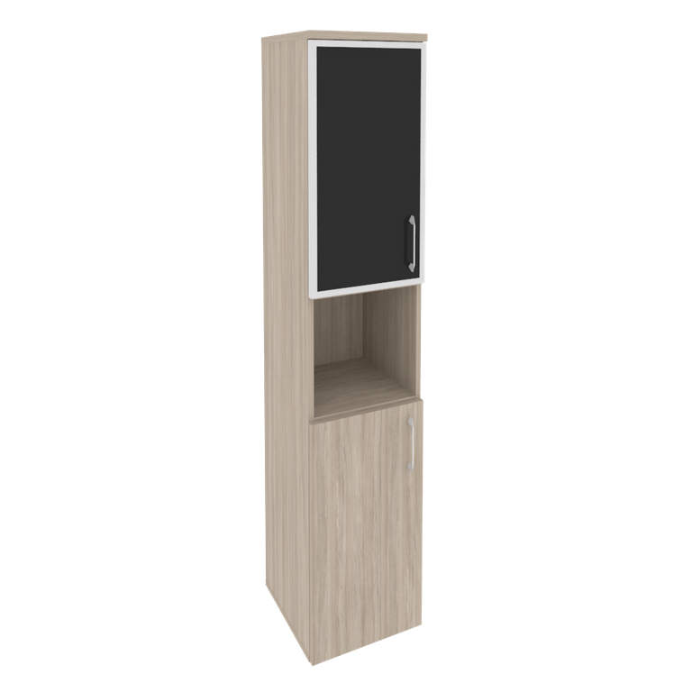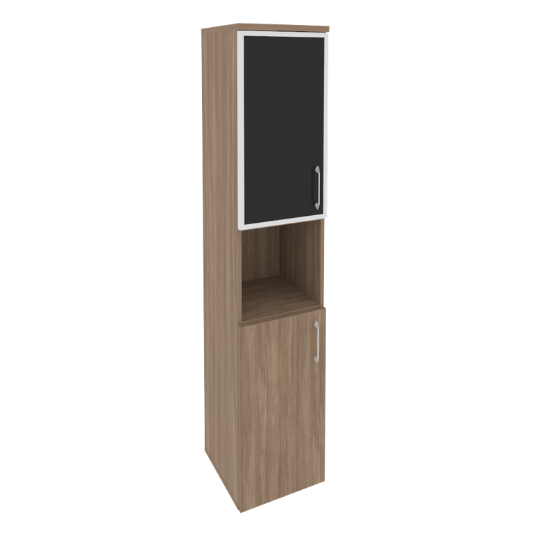 Шкаф для документов высокий узкий левый (низкая ЛДСП + короткая дверь стекло в алюминиевой раме) Onix O.SU-1.4R(L) Дуб Аризона/white/black/mate 400x420x1977 Дуб Аризона
