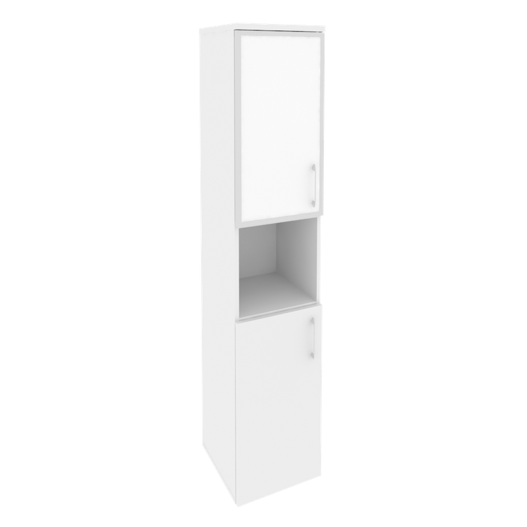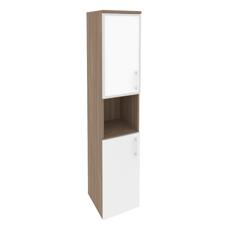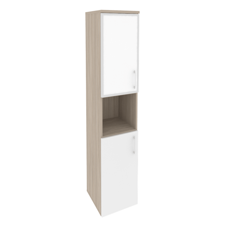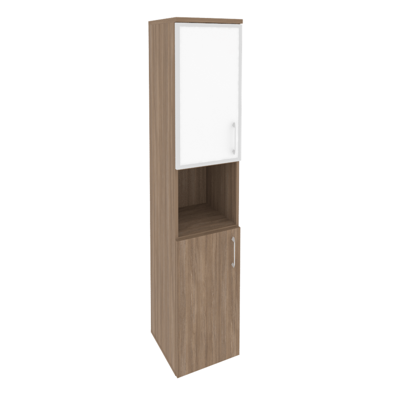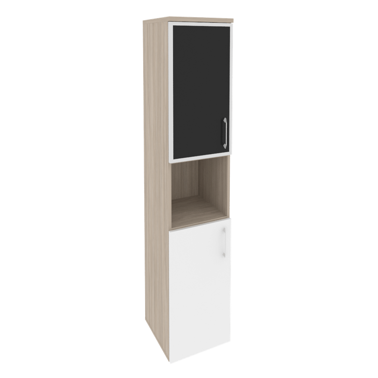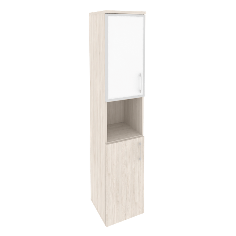 Шкаф для документов высокий узкий левый (низкая ЛДСП + короткая дверь стекло в алюминиевой раме) Onix O.SU-1.4R(L) Дуб Аризона/white/black/mate 400x420x1977 Дуб Аризона
