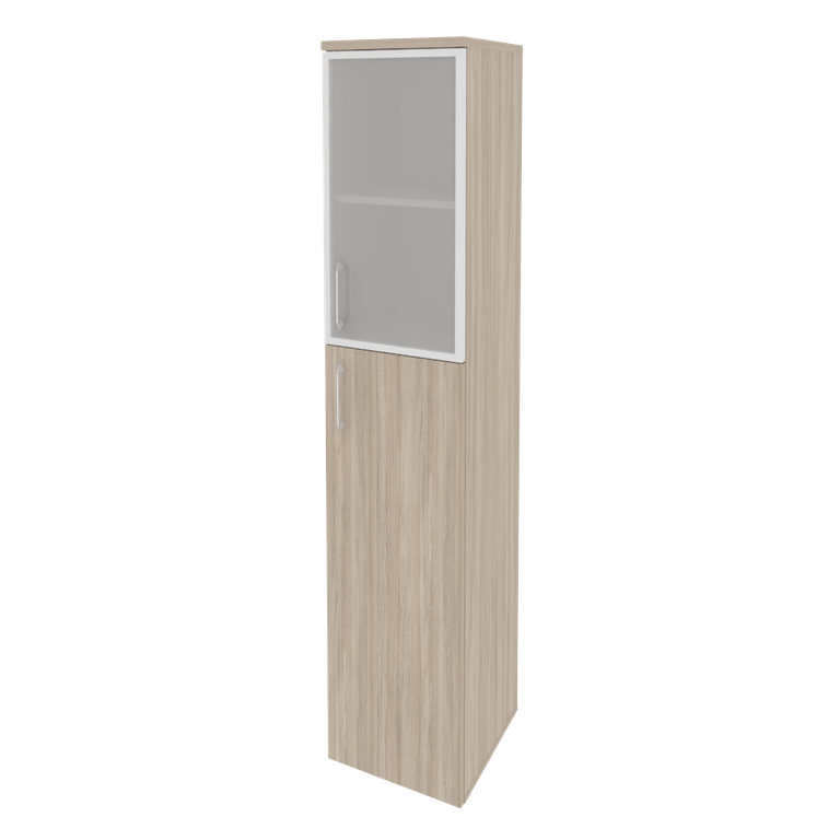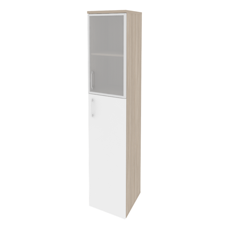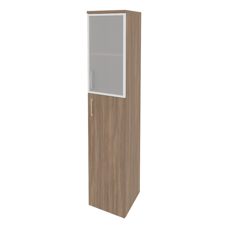 Шкаф для документов высокий узкий правый (1 средняя дверь ЛДСП + 1 низкая дверь стекло в алюминиевой раме) Onix O.SU-1.7R(R) Дуб Аризона/mate 400x420x1977 Дуб Аризона