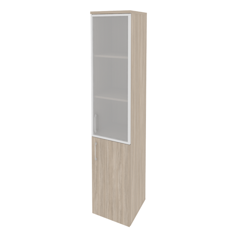 Шкаф для документов высокий узкий правый (низкая дверь ЛДСП + средняя дверь стекло в алюминиевой раме) Onix O.SU-1.2R(R) Дуб Аризона/mate 400x420x1977 Дуб Аризона