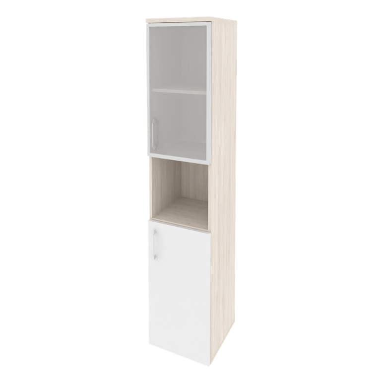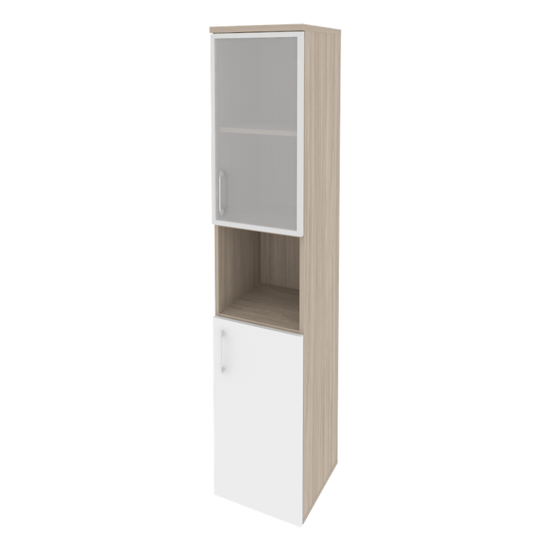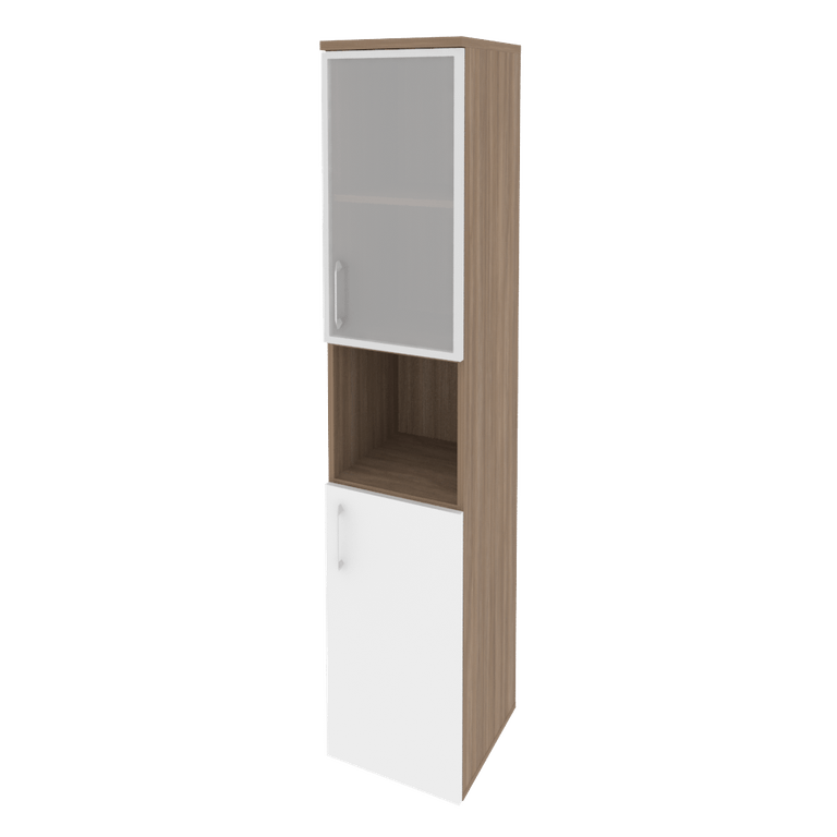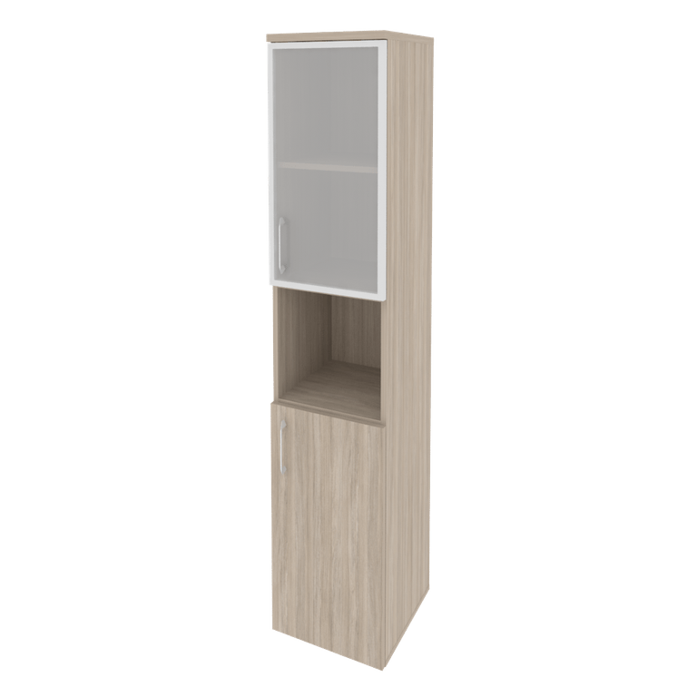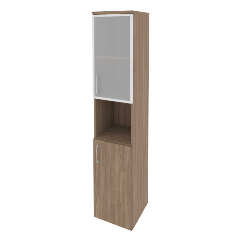 Шкаф для документов высокий узкий правый (низкая ЛДСП + короткая дверь стекло в алюминиевой раме) Onix O.SU-1.4R(R) Дуб Аризона/mate 400x420x1977 Дуб Аризона
