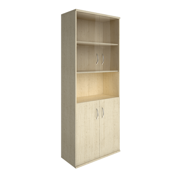 Шкаф для документов высокий широкий (2 низкие двери ЛДСП, 2 низкие двери стекло) RIVA А.СТ-1.4 Клен 770х365х1980 Клен