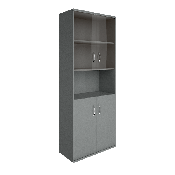 Шкаф для документов высокий широкий (2 низкие двери ЛДСП, 2 низкие двери стекло) RIVA А.СТ-1.4 Серый 770х365х1980 Серый