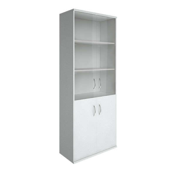 Шкаф для документов высокий широкий (2 низкие двери ЛДСП, 2 средние двери стекло) RIVA А.СТ-1.2 Белый 770х365х1980 Белый