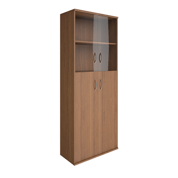 Шкаф для документов высокий широкий (2 средние двери ЛДСП, 2 низкие двери стекло) RIVA А.СТ-1.7 Орех гварнери 770х365х1980 Орех Гварнери