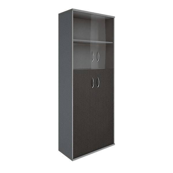Шкаф для документов высокий широкий (2 средние двери ЛДСП, 2 низкие двери стекло) RIVA А.СТ-1.7 Венге Металлик 770х365х1980 Венге металлик
