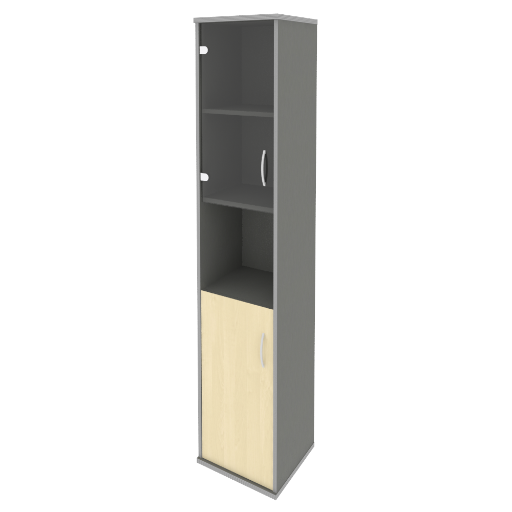 Шкаф для документов высокий узкий левый (1 низкая дверь ЛДСП, 1 низкая дверь стекло) RIVA А.СУ-1.4Л Клен Металлик 404х365х1980 клен металлик