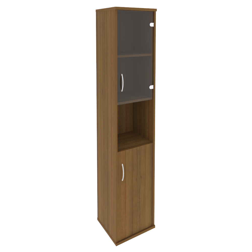 Шкаф для документов в офис высокий узкий Правый (1 низкая дверь ЛДСП, 1 низкая дверь стекло) RIVA А.СУ-1.4Пр Орех гварнери 404х365х1980 Орех гварнери
