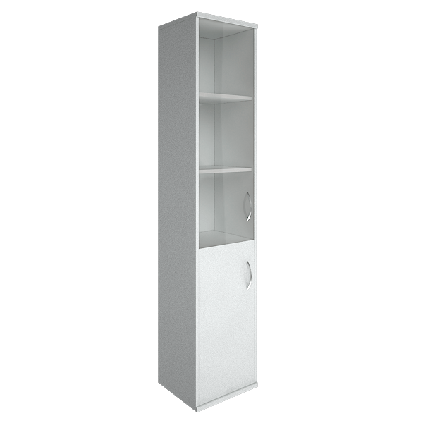 Шкаф для документов высокий узкий левый (1 низкая дверь ЛДСП, 1 средняя дверь стекло) RIVA А.СУ-1.2Л Белый 404х365х1980 Белый