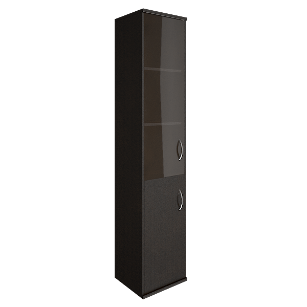 Шкаф для документов высокий узкий левый (1 низкая дверь ЛДСП, 1 средняя дверь стекло) RIVA А.СУ-1.2Л Венге цаво 404х365х1980 Венге Цаво