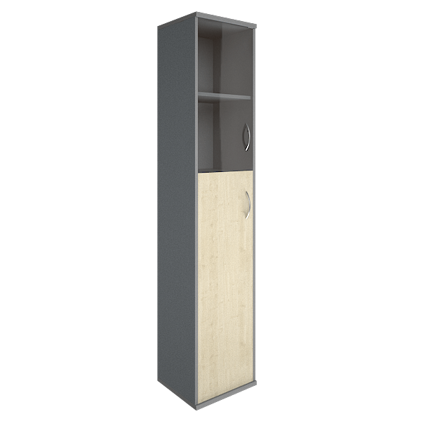 Шкаф для документов высокий узкий левый (1 средняя дверь ЛДСП, 1 низкая дверь стекло) RIVA А.СУ-1.7Л Клен Металлик 404х365х1980 клен металлик