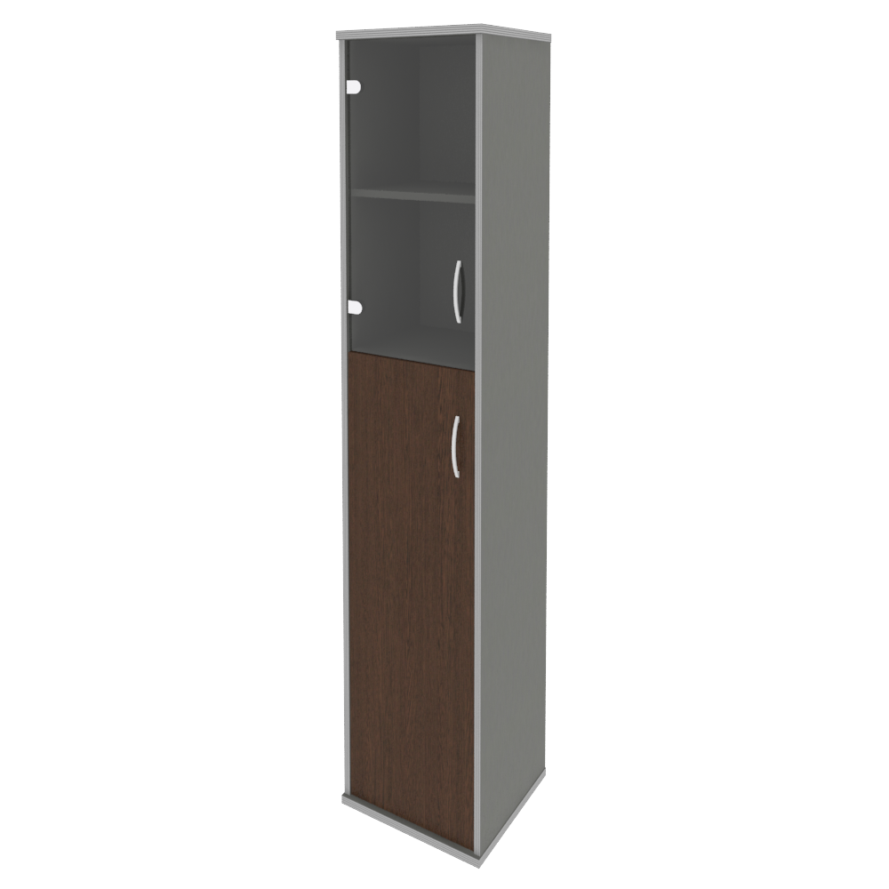 Шкаф для документов высокий узкий левый (1 средняя дверь ЛДСП, 1 низкая дверь стекло) RIVA А.СУ-1.7Л Венге Металлик 404х365х1980 Венге металлик