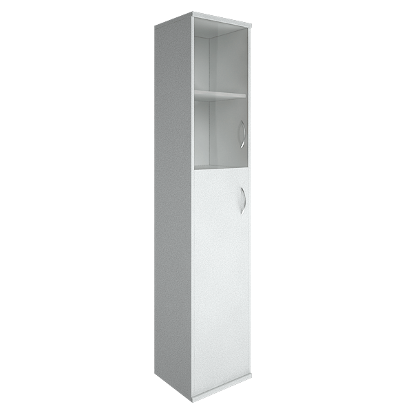 Шкаф для документов высокий узкий левый (1 средняя дверь ЛДСП, 1 низкая дверь стекло) RIVA А.СУ-1.7Л Белый 404х365х1980 Белый