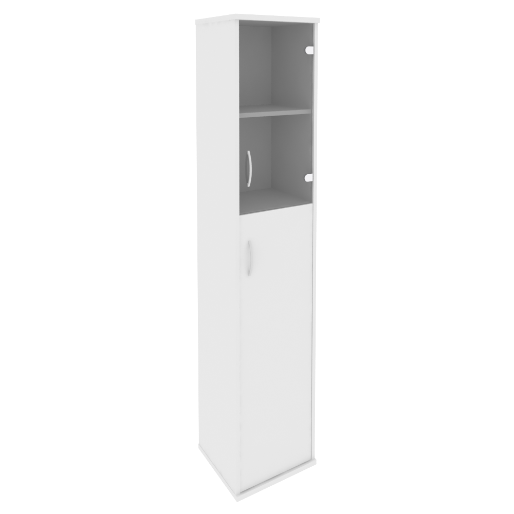 Шкаф для документов высокий узкий правый (1 средняя дверь ЛДСП, 1 низкая дверь стекло) RIVA А.СУ-1.7Пр Белый 404х365х1980 Белый