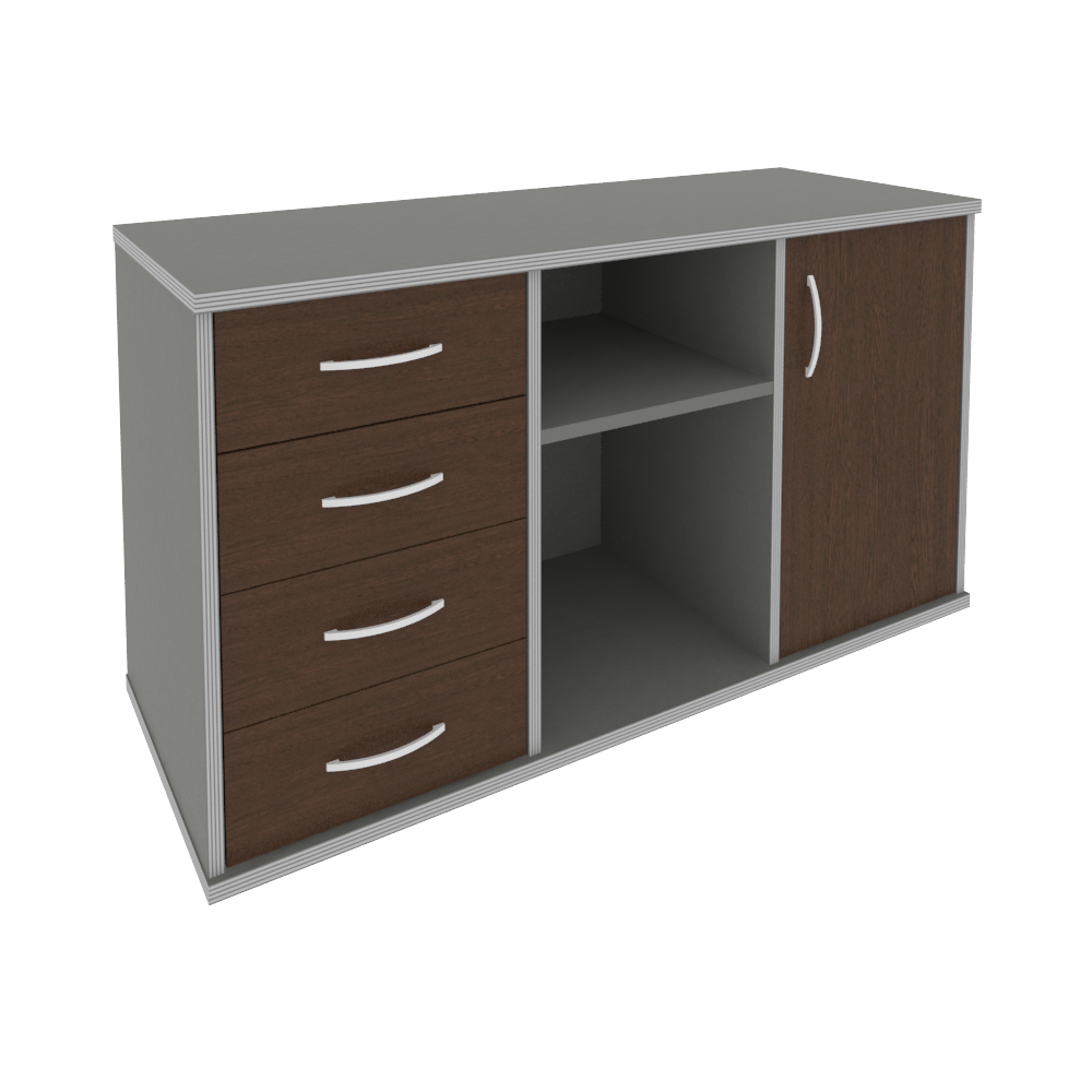 Столы на металле: L-образные опоры: имеют регулировочные элементы круглой формы. Предусмотрена возможность прокладки кабеля внутри опоры. Цвет металлокаркаса: алюминиевый металлик. Столешницы имеют отверстия для кабелей с установленными пластиковыми заглушками серого цвета. (прямой стол - 2 заглушки, криволинейный стол - 1 заглушка) Изделия из ЛДСП: Толщина столешницы: 22 мм. Толщина опор и каркасов: 18 мм. Основной материал: трехслойное экологически чистое ДСП, класс эмиссии E1 (пр-во Kronospan, Россия) Материал покрытия: износоустойчивый ламинат с пропиткой меламиновыми смолами Защита торцевых поверхностей основных элементов: кромка ПВХ, толщина 2 мм. (пр-во Германия) Защита торцевых nоверхностей дополнительных элементов: кромка ПВХ, толщина 0,4 и 2 мм. (пр-во Германия) Лицевая фурнитура: алюминий (пр-во Польша) Регулируемые опоры столов и шкафов: металлические с пластиковым основанием, диапазон регулировок - до 15 мм. (пр-во Польша) Направляющие в тумбах: роликовые (пр-во Польша) Силовые сочленения: четырехкомпонентные эксцентриковые стяжки Металлические опоры: производство компании ЮНИСМА |