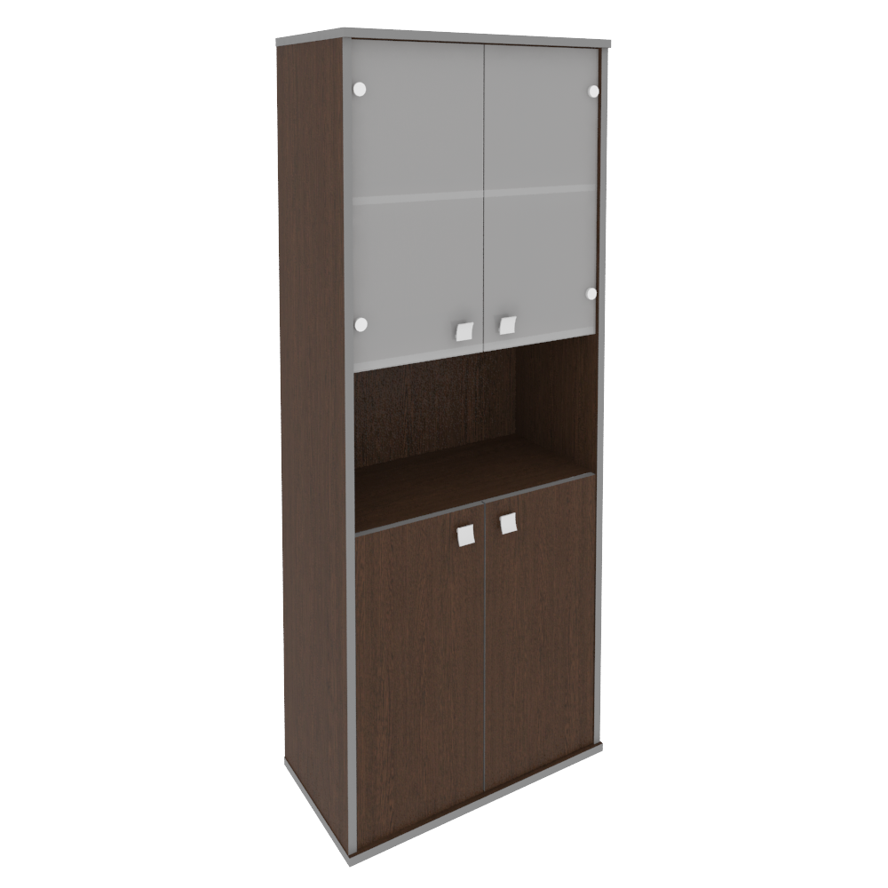 Шкаф для документов высокий широкий (2 низкие двери ЛДСП, 2 низкие двери стекло) STYLE Л.СТ-1.4 Венге 778х410х1980 Венге Цаво