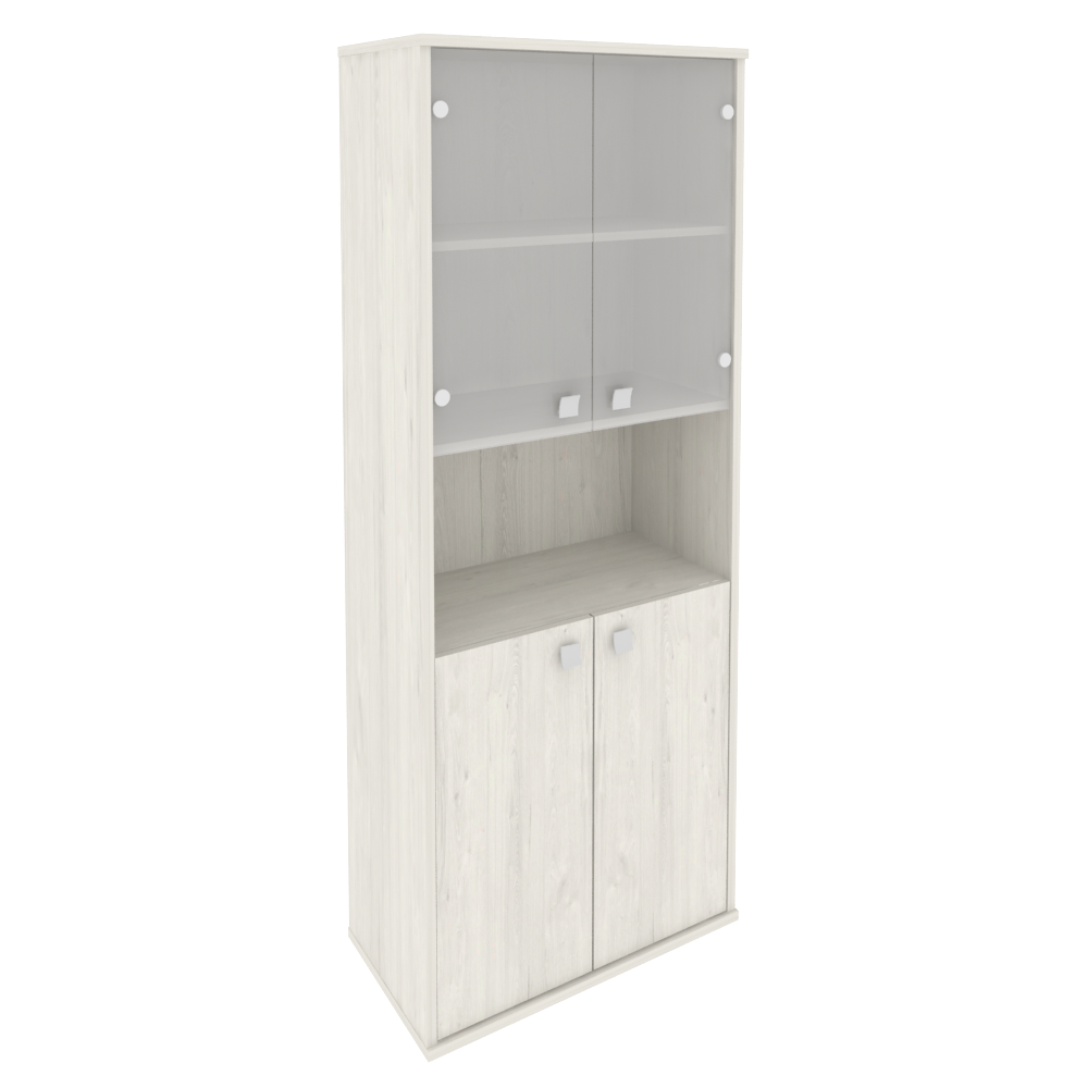 Шкаф для документов высокий широкий (2 низкие двери ЛДСП, 2 низкие двери стекло) STYLE Л.СТ-1.4 Дуб Наварра 778х410х1980 Дуб наварра