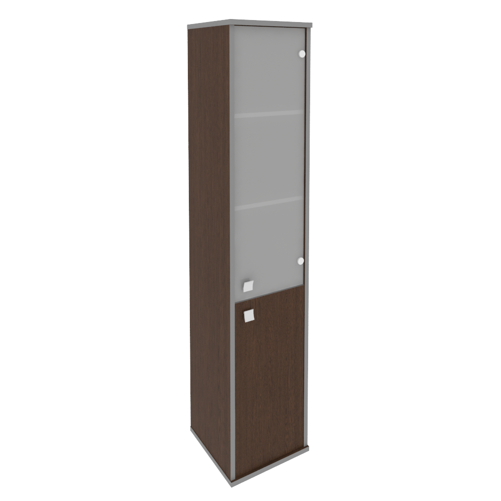 Шкаф для документов в офис высокий узкий правый (1 низкая дверь ЛДСП, 1 средняя дверь стекло) STYLE Л.СУ-1.2(R) Венге 412х410х1980 Венге Цаво