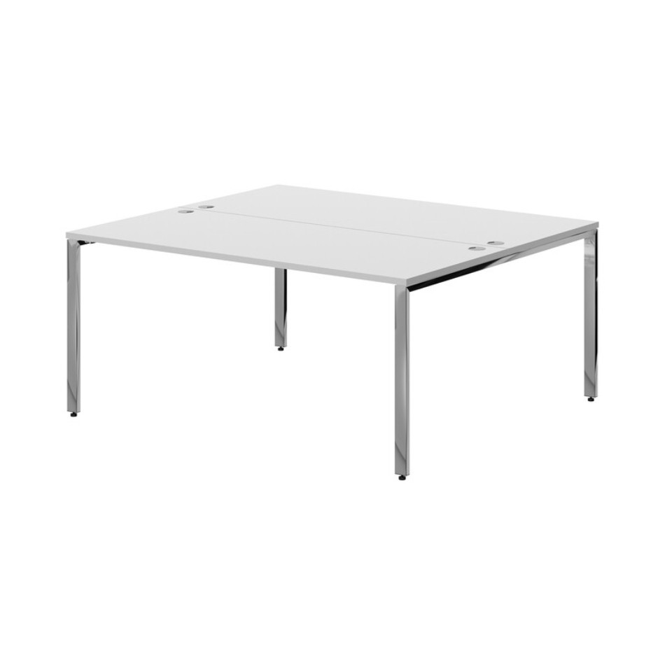 "Столешница из ЛДСП т. 25мм c кромкой ПВХ т. 2мм. Опоры металлокаркаса П-образной формы из полированной нержавеющей стали, труба 60х30х1,5мм с регулировкой внизу. Каждая столешница комплектуется двумя траверсами, цвет краски - хром.