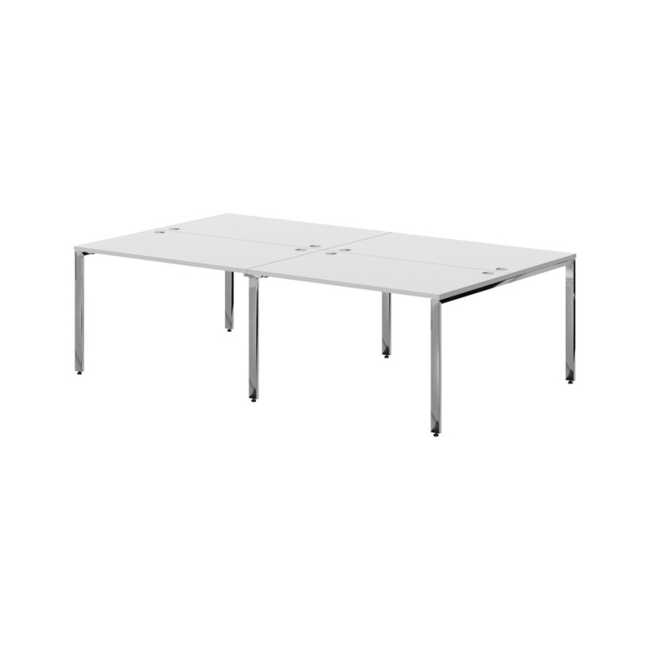 Столешница из ЛДСП т. 25мм c кромкой ПВХ т. 2мм. Опоры металлокаркаса П-образной формы из полированной нержавеющей стали, труба 60х30х1,5мм с регулировкой внизу. Каждая столешница комплектуется двумя траверсами, цвет краски - хром.