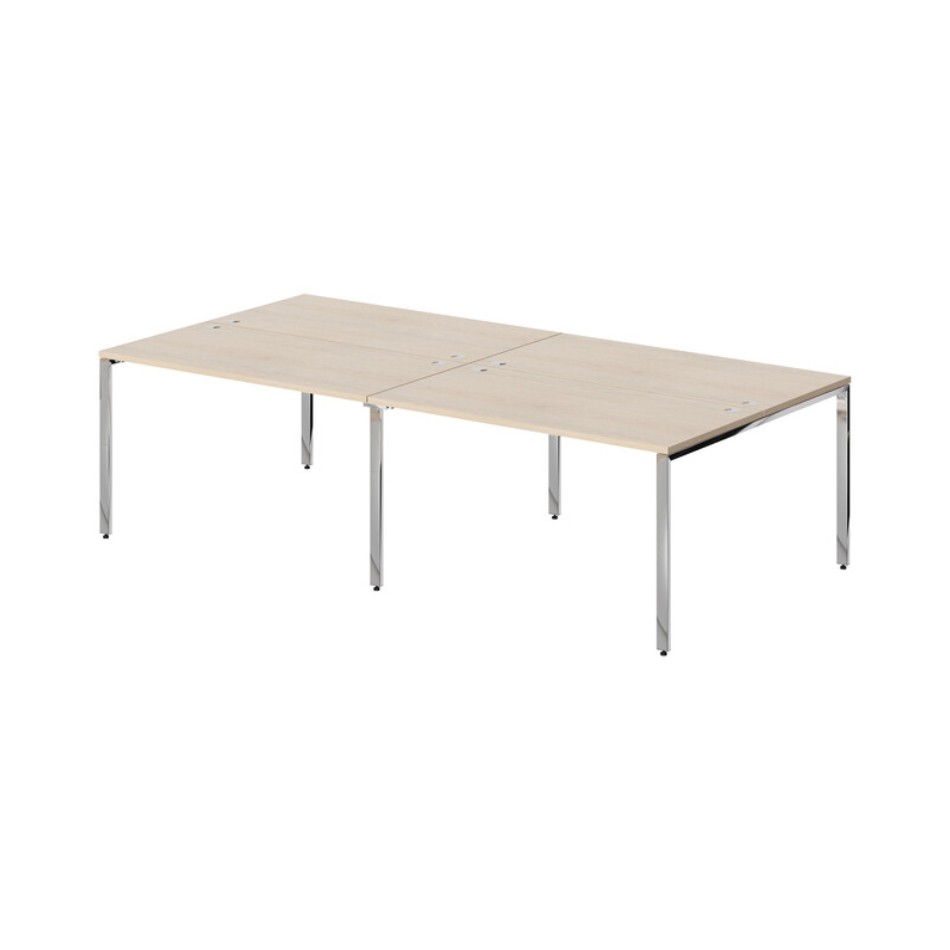 Столешница из ЛДСП т. 25мм c кромкой ПВХ т. 2мм. Опоры металлокаркаса П-образной формы из полированной нержавеющей стали, труба 60х30х1,5мм с регулировкой внизу. Каждая столешница комплектуется двумя траверсами, цвет краски - хром.
