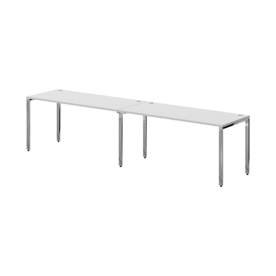"Столешница из ЛДСП т. 25мм c кромкой ПВХ т. 2мм. Опоры металлокаркаса П-образной формы из полированной нержавеющей стали, труба 60х30х1,5мм с регулировкой внизу. Каждая столешница комплектуется двумя траверсами, цвет краски - хром..