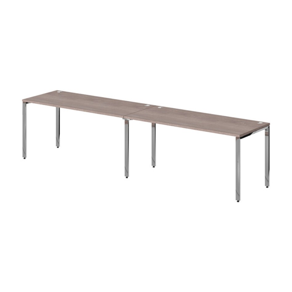 "Столешница из ЛДСП т. 25мм c кромкой ПВХ т. 2мм. Опоры металлокаркаса П-образной формы из полированной нержавеющей стали, труба 60х30х1,5мм с регулировкой внизу. Каждая столешница комплектуется двумя траверсами, цвет краски - хром..