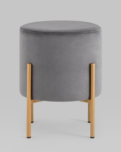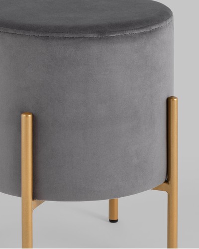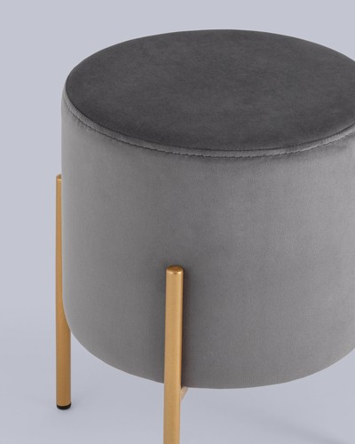 Стильный круглый пуф на металлических ножках. Мягкая обивка выполнена из износостойкого велюра, тактильно приятный и долговечный материал. Металлические ножки золотого цвета высотой 14,5 см выдерживают нагрузку до 80 кг. Подпятники в основании ножек делают пуф более устойчивым и предотвращают скольжение. Отличное дополнение в интерьер спальни, прихожей или зала.