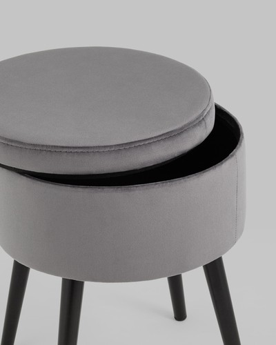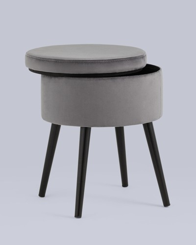 Компактный пуф с ящиком в лаконичном стиле. Мягкая обивка выполнена из износостойкого велюра, тактильно приятный и долговечный материал. Металлические ножки черного цвета высотой 26 см выдерживают нагрузку до 80 кг. Под сидением имеется ящик для хранения мелочей, крышка полностью съемная. Подпятники в основании ножек делают пуф более устойчивым и предотвращают скольжение.