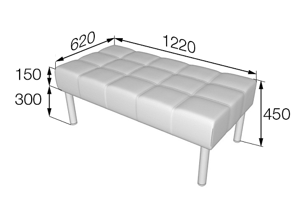 Банкетка доставляется покупателю в разобранном виде. Опоры легко крепятся с помощью шуруповерта и саморезов.