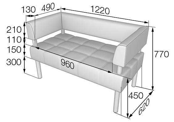 Диван 2-местный Бизнес 1220х620х770 Бежевый