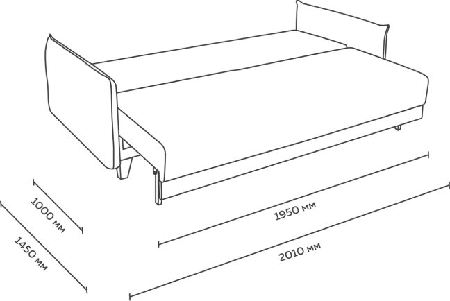 Габариты посадочного места без подушек (ШхГ): 1950х800 мм.