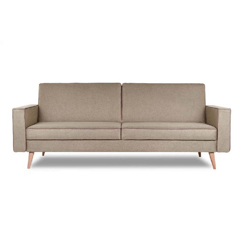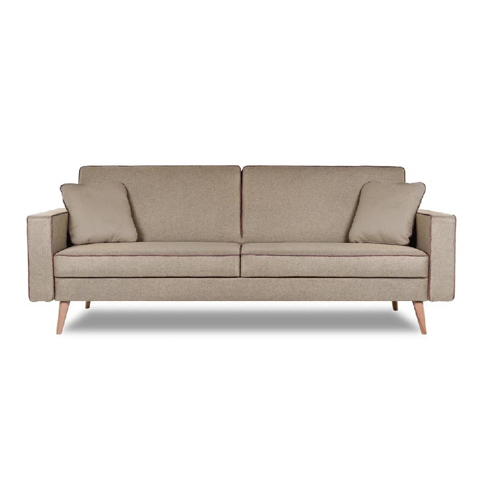 Трёхместный диван-релакс BERUS / БЕРУС рогожка Uno Beige + кант рогожка Preston 232 Бежевый 2140х900х860 (Finsoffa)