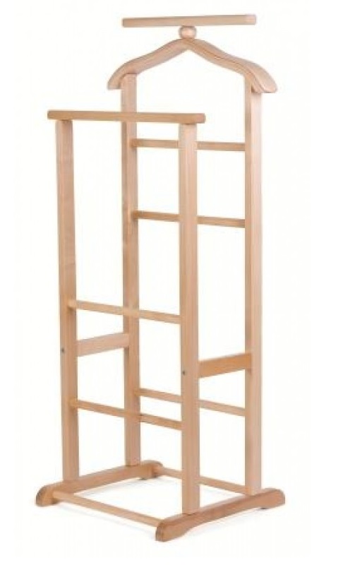 Вешалка костюмная В9Н. Один раз воспользовавшись костюмной вешалкой, сразу понимаешь насколько раньше было неудобно без нее. Теперь, как правило, в каждой спальне присутствует одна, или пара таких вешалок. На этой вешалке можно не только хранить повседневную одежду, но и подбирать комплект на завтрашний день по цвету, по стилю, по настроению. При этом в комнате сохраняется порядок, а вещи не мнутся и не теряются. Если у вас еще нет костюмной вешалки, то не сомневайтесь в полезности ее приобретения. Данная модель в отличие от модели В6Н дополнена второй стойкой, на которой расположена перекладина для брюк, это может быть иногда удобнее. Вешалка полностью изготовлена из массива дерева, имеет классический вид, надежна и экономична.