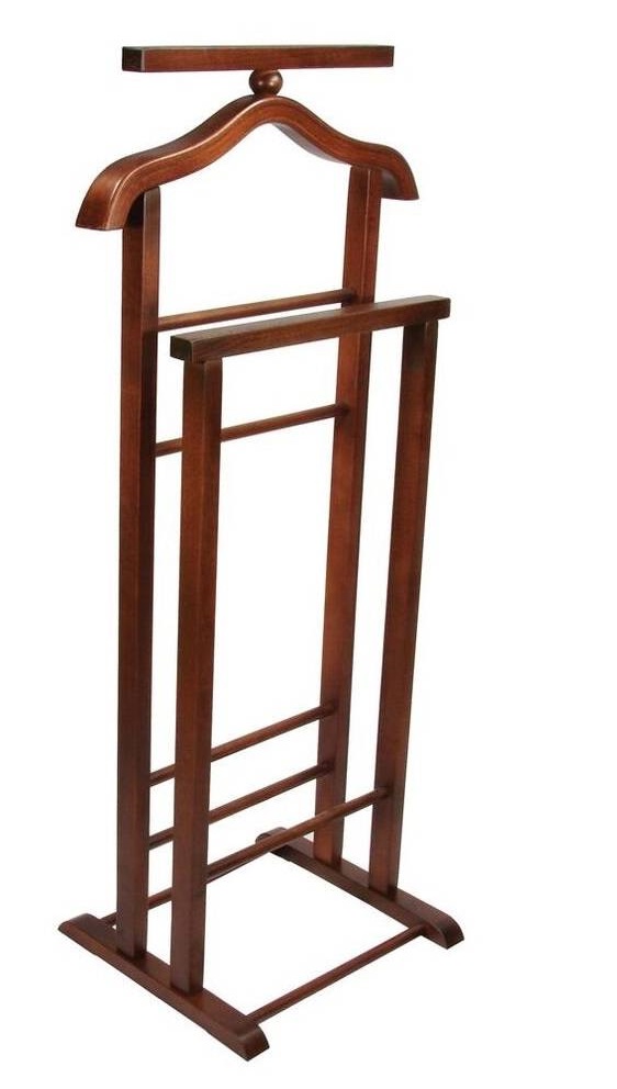 Вешалка костюмная В9Н. Один раз воспользовавшись костюмной вешалкой, сразу понимаешь насколько раньше было неудобно без нее. Теперь, как правило, в каждой спальне присутствует одна, или пара таких вешалок. На этой вешалке можно не только хранить повседневную одежду, но и подбирать комплект на завтрашний день по цвету, по стилю, по настроению. При этом в комнате сохраняется порядок, а вещи не мнутся и не теряются. Если у вас еще нет костюмной вешалки, то не сомневайтесь в полезности ее приобретения. Данная модель в отличие от модели В6Н дополнена второй стойкой, на которой расположена перекладина для брюк, это может быть иногда удобнее. Вешалка полностью изготовлена из массива дерева, имеет классический вид, надежна и экономична.