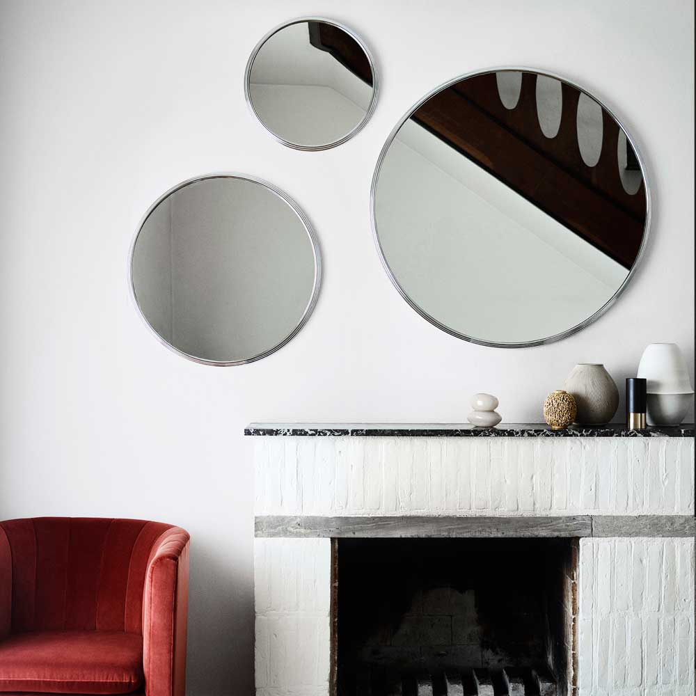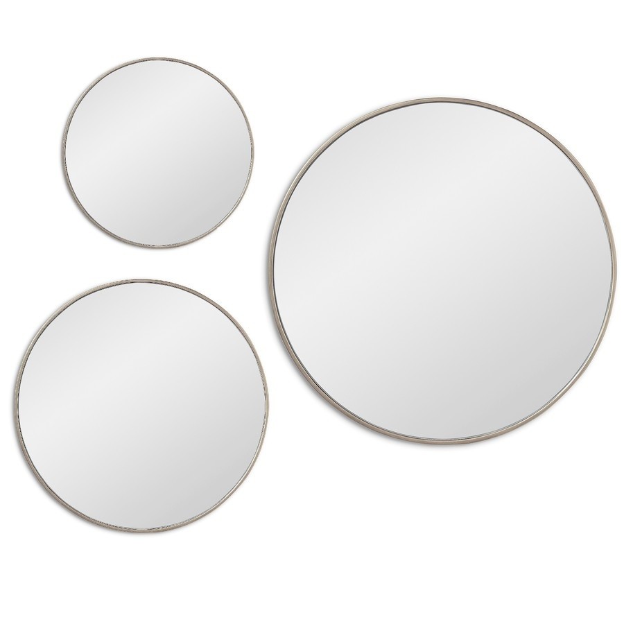 Композиция из трех зеркал, разных диаметров. Влагостойкие серебряные зеркала в деревянной раме окрашенной в серебро, отлично подойдут: Для ванной комнаты, гостиной, прихожей, спальни, в холл или можно повесить над камином. Навесные круглые зеркала удачно дополнят ваш интерьер.
