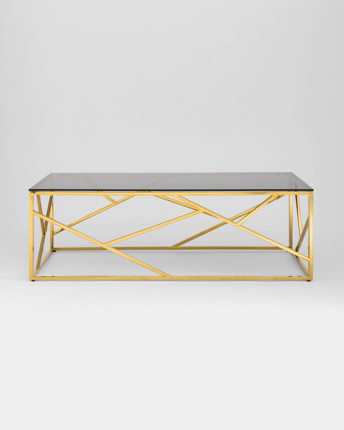 Журнальный стол 120*60 АРТ ДЕКО стекло smoke сталь золото Stool Group золото
