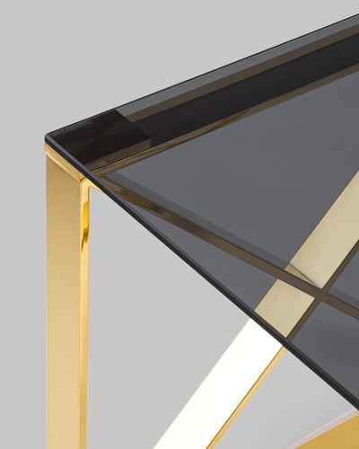 Журнальный стол 55*55 КРОСС золото стекло smoke Stool Group золото